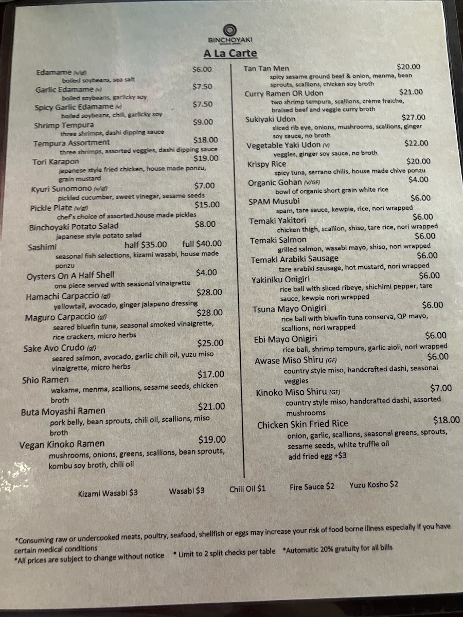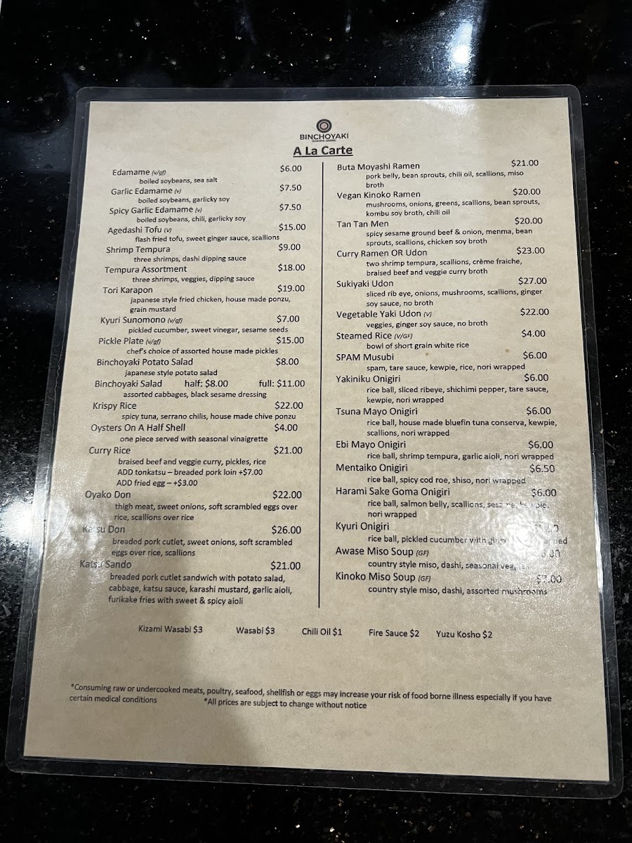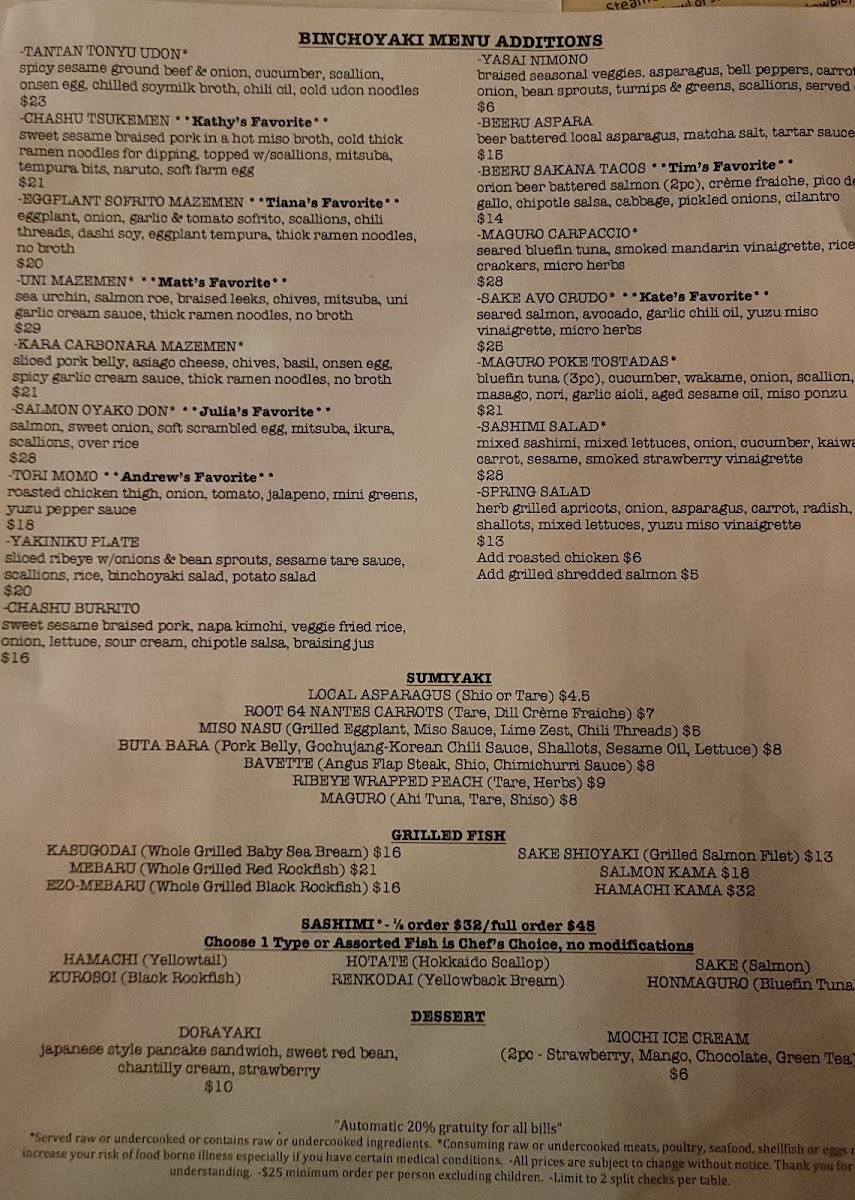 Whether sharing plates with friends or enjoying a solo meal, the menu at Binchoyaki creates a harmonious experience. The food’s deliberate simplicity and attention to detail pair well with the welcoming environment, offering a taste of Japan that feels genuine and grounded.